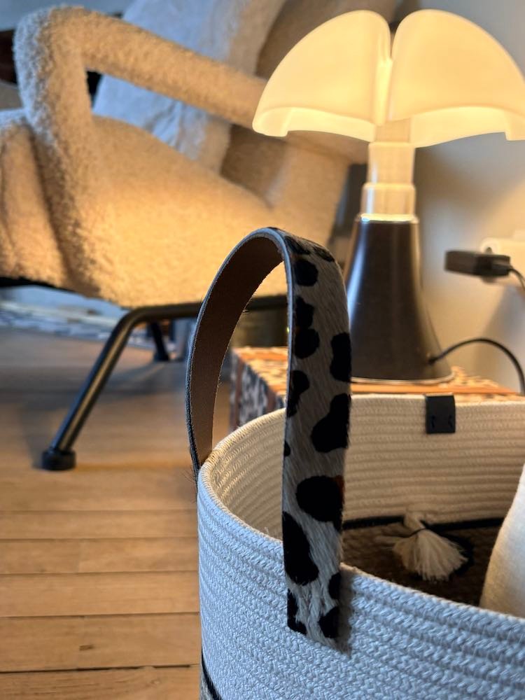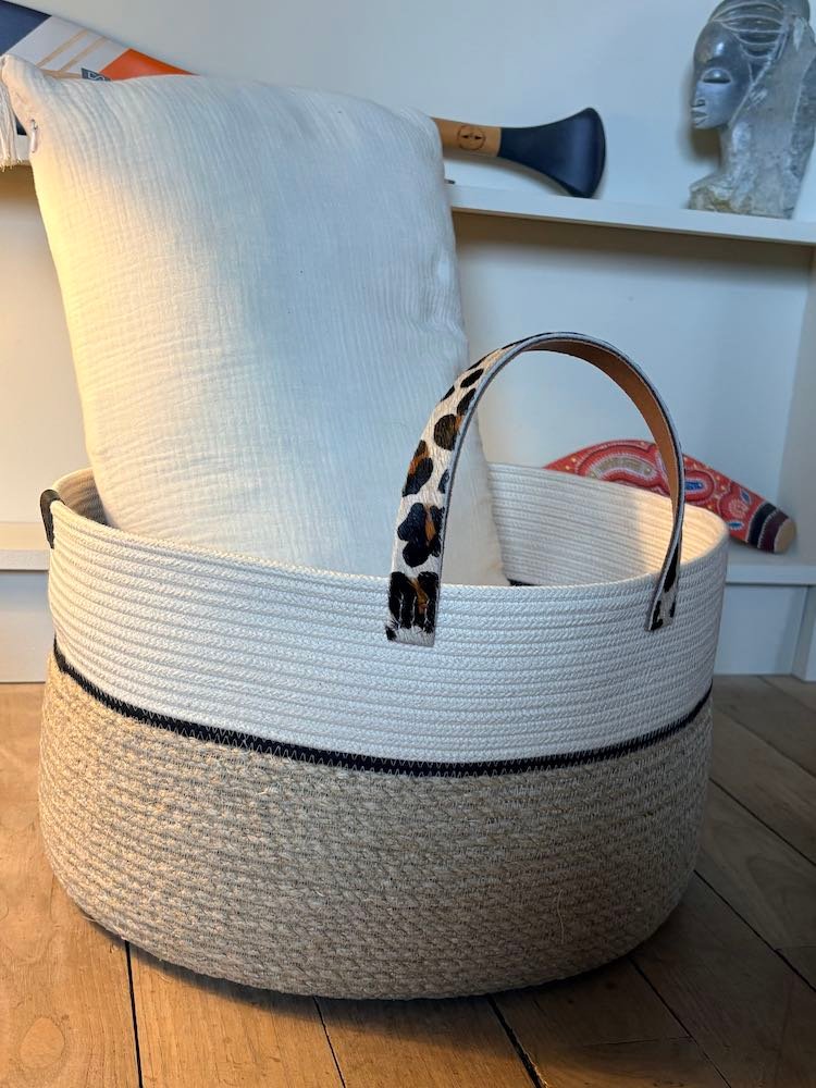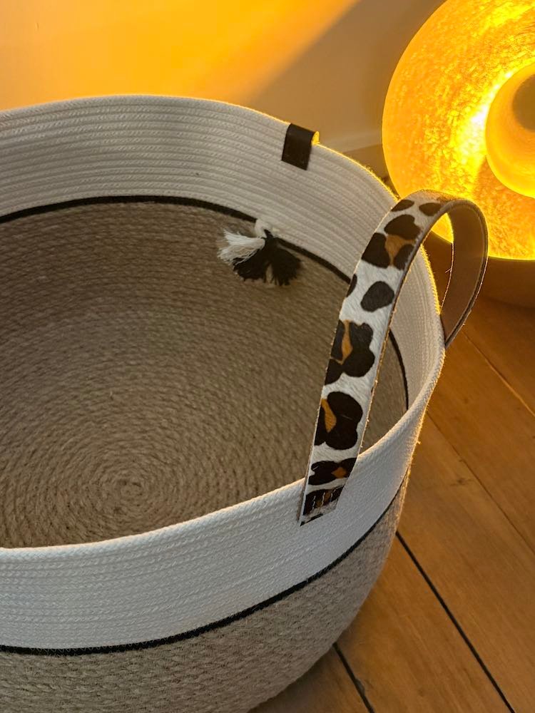 Ce panier combine authenticité et modernité. Le chanvre apporte chaleur et texture, tandis que les anses en cuir imprimé léopard ajoutent une signature visuelle forte. Une pièce décorative intemporelle qui structure l’espace avec élégance, qui s’intègre parfaitement dans une ambiance bohème, scandinave ou contemporaine.