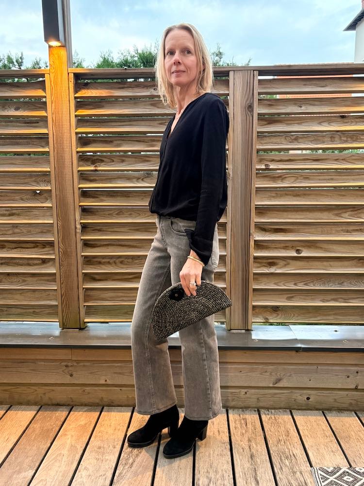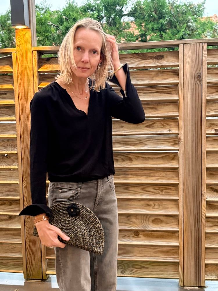 Un petit détail délicat vient parfaire son design : une fleur noire discrètement cousue, qui apporte une note féminine et sophistiquée.